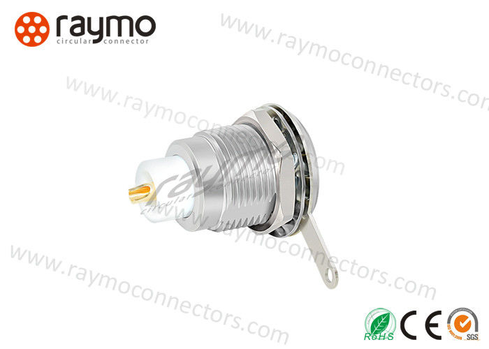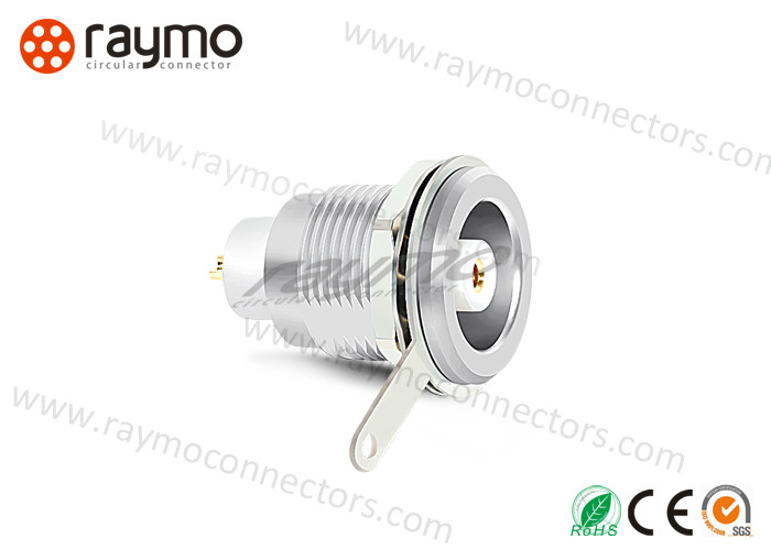 سوکت ثابت، ثابت مهره، سری 00S، نوع چند قطبی با کنتاکت های کواکسیال 50 اهم، پوسته بیرونی برنجی با روکش کروم، عایق PPS |