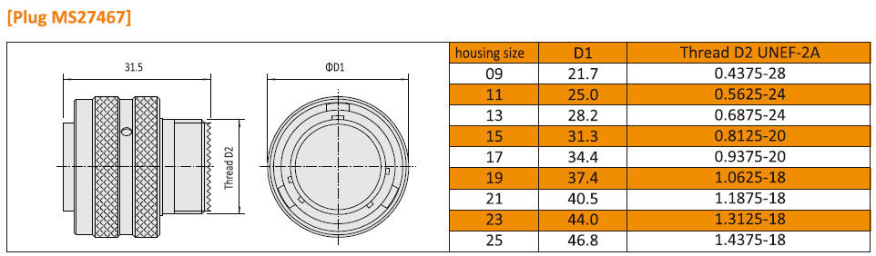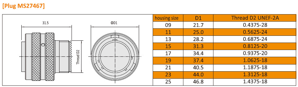 توضیحات استاندارد آمفنول MIL-DTL-38999 سری IJY27467 ارتشاتصال کننده های دایره ای